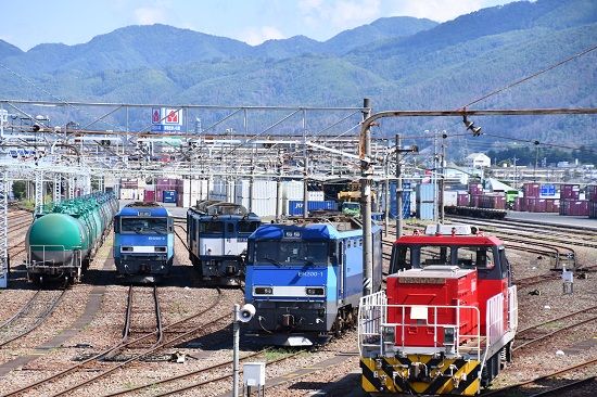 西線貨物8084レは、前を走る「WVしなの」が遅れた為に、西線貨物8084レも遅れての通過でしたが、「WVしなの」の時には太陽光が射していたのが、通過直前に雲配給があり、(ノ∀`)アチャー・・露出不足でした。Σ(゚д゚lll)ガーン