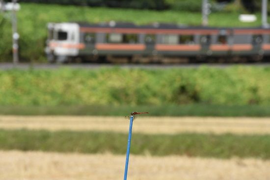 写真2枚目は、210M 211系ですが、トンボが飛び交っている中、棒の先に止まったトンボにピントを合わせて撮影してみました。