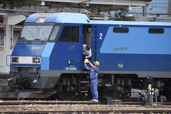 写真4枚目は、坂城貨物5463レ EH200-24号機とのツーショットです。
