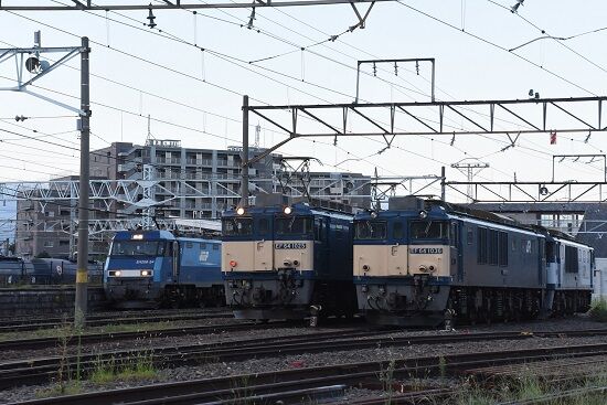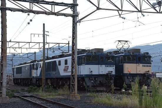 写真3枚目は、反対側に回りEF64-1036号機との原色並びです。