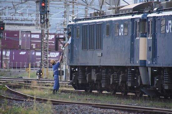 写真2枚目は、EF64-1025+1037号機が、誘導員さんの指示で発車して行きます。