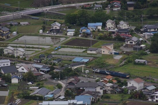 写真1枚目は、坂北駅手前を俯瞰にてEF64重連を捕獲です。
