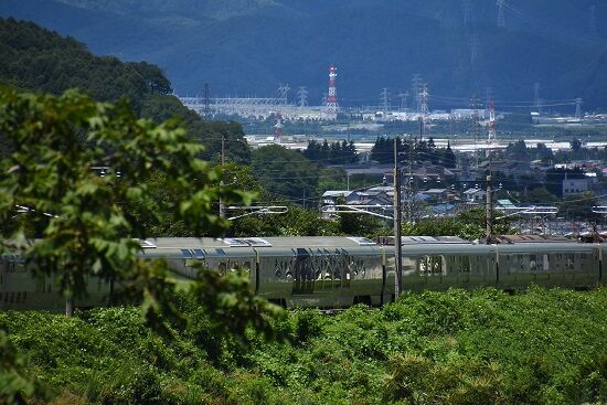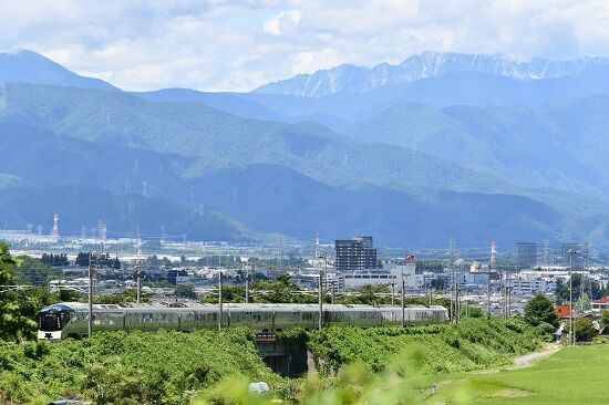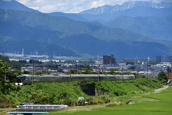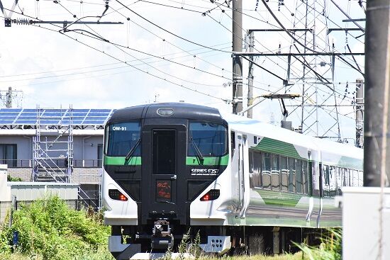 写真4枚目は、7月30日撮影 8079M E257系5000番台 OM91編成による「あずさ79号」が、塩尻駅を発車して来た所です。