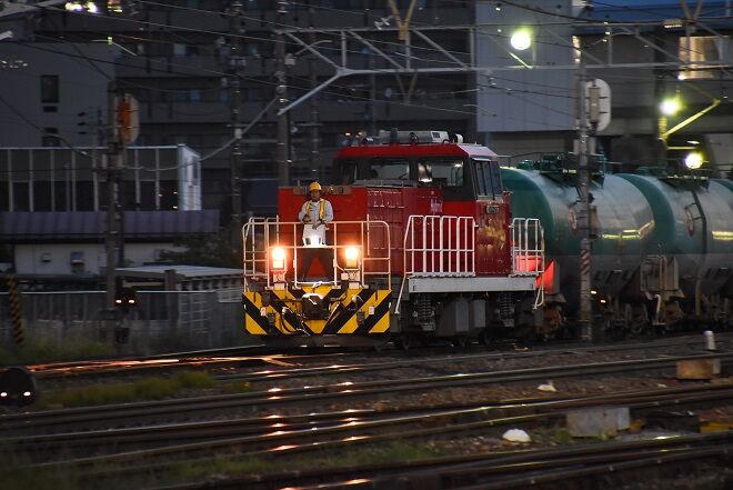 写真2枚目は、南松本駅舎横に止まっていた緑タキをオイルターミナルへと牽き出す、HD300-9号機です。