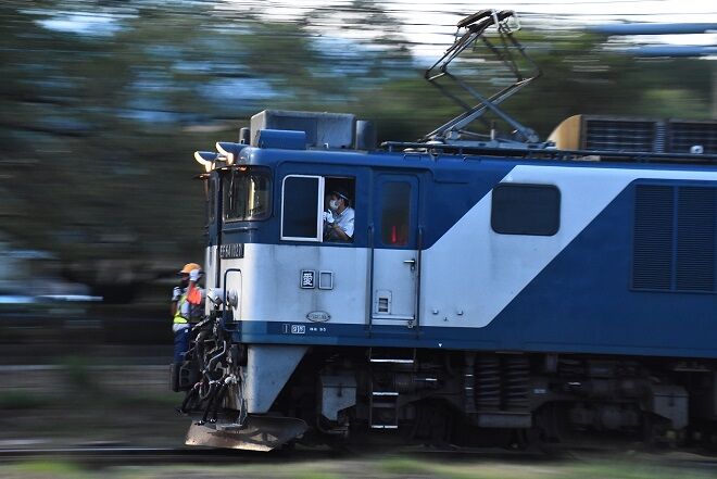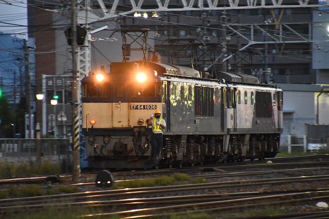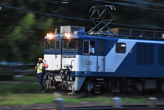写真4枚目は、塩尻寄りの引き込み線にて方向転換して、EF64-1027号機が先頭となり操車係に誘導されて来た所です。
