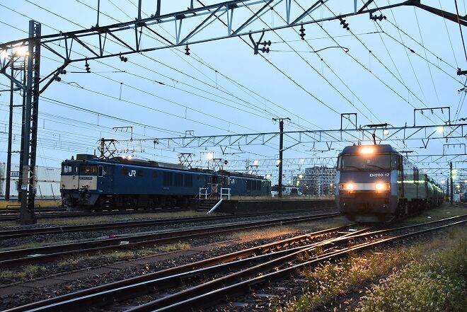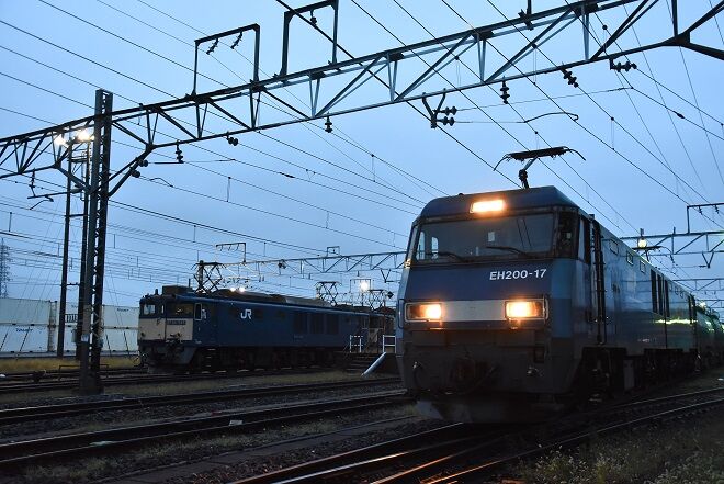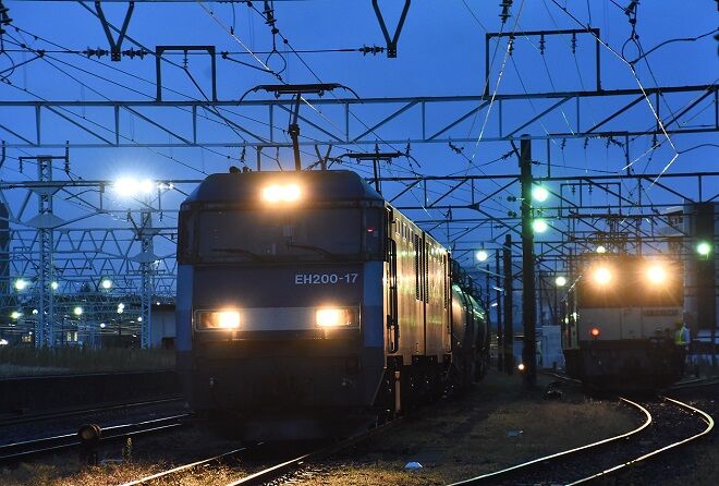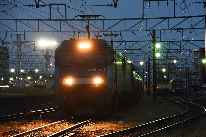 写真2枚目は、時間になると、篠ノ井線貨物5463レ EH200-17号機が発車する所です。