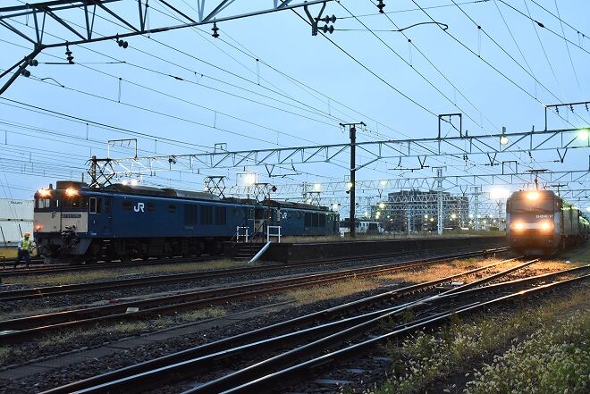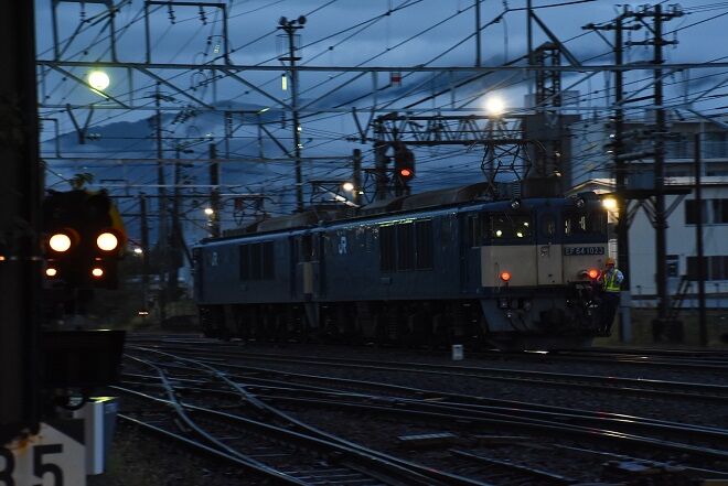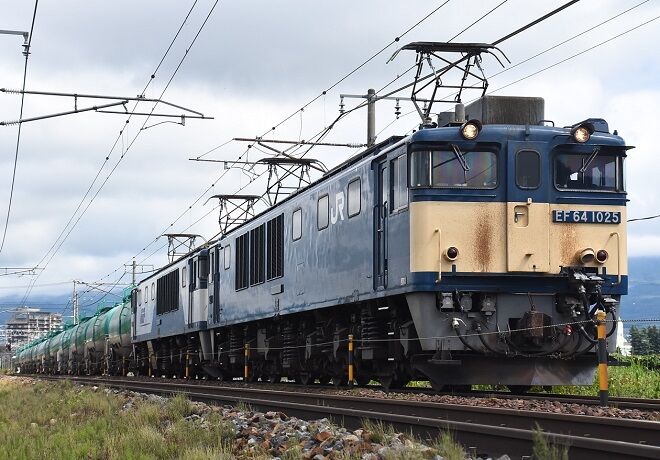 篠ノ井線8087レ EF64-1045号機と篠ノ井線貨物5463レ EH200-17号機のツーショットです。