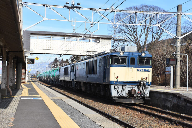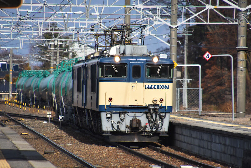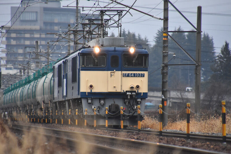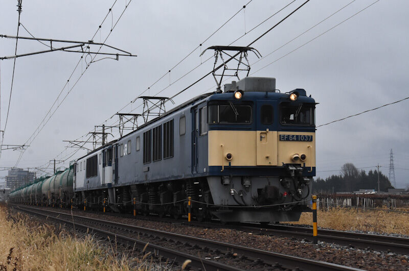 本日の西線貨物8084レは、EF64-1037+1020号機の原色+更新色重連にて、タキを16両牽いてです。