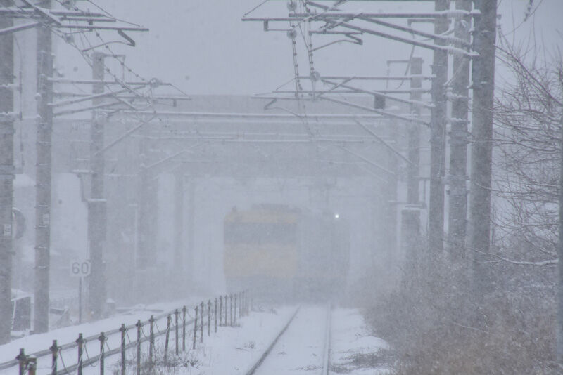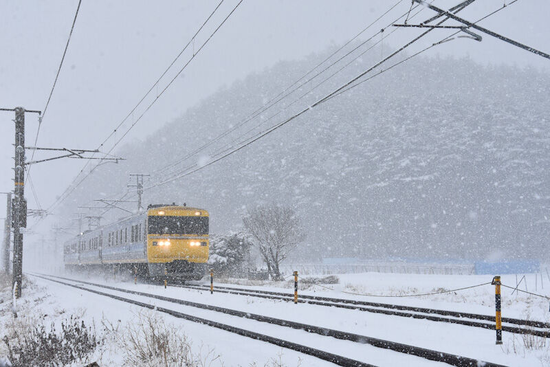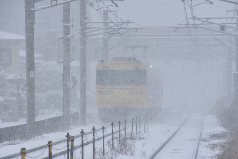 それでは本日の写真は、2月25日撮影 西線にて雪が降る中の211系と特急「しなの」より
