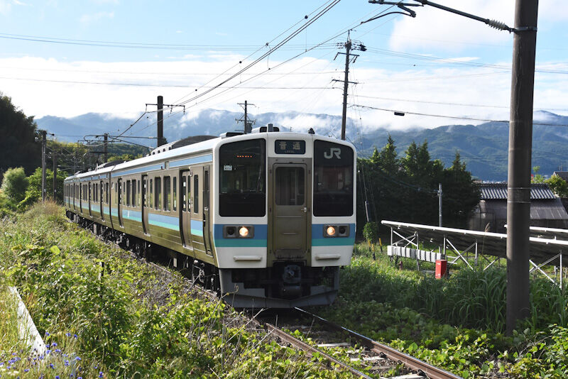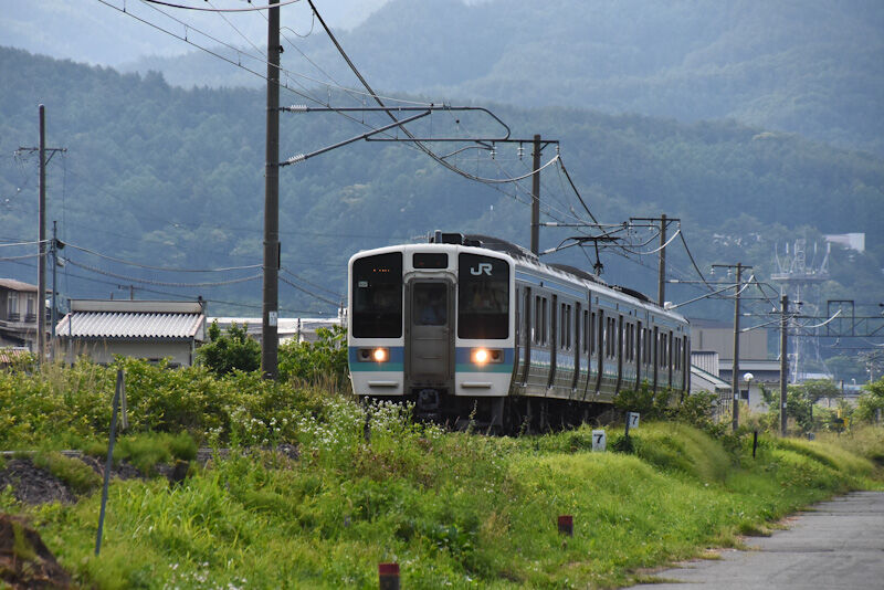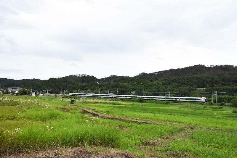 聖高原駅で「しなの7号」との交換を撮影したので、当初予定した撮影ポイントまでの移動時間がなくなり、急遽坂北駅の先にて、サイドから編成狙いで撮影でした。・・・3発目