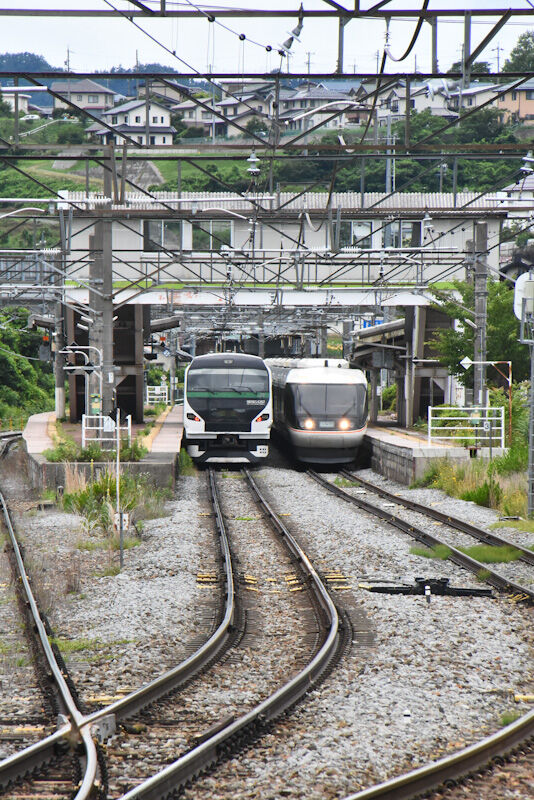 聖高原のストレートで撮影した後、もしかして聖高原駅で「しなの7号」と交換か?と思い、急遽並びが見える場所へと移動すると、丁度「しなの7号」が通過するところで、並びが撮れました。(^^)v・・2発目