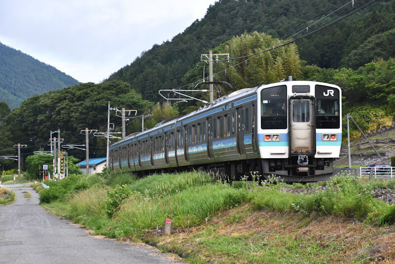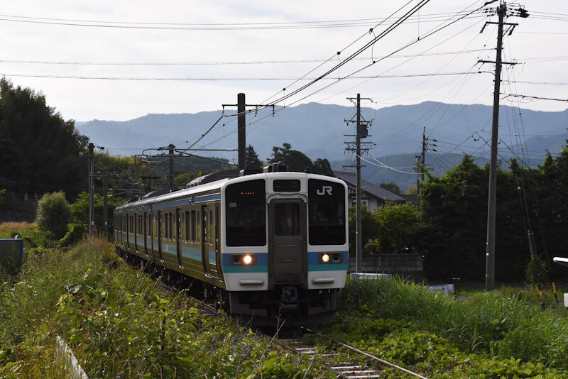 写真5枚目は、当初予定した場所と違いますが、坂北駅の先にて後撃ちですが、サイドからの編成狙いです。3発目の撮影