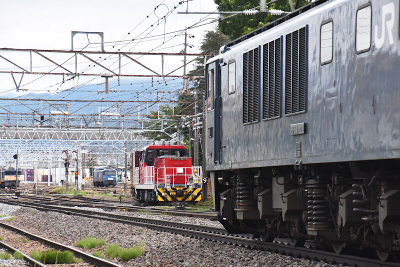 撮影目的地へ行く前に南松本に立ち寄り、構内でお休み中のEH200-901号機を撮影して、駅舎横でお休みの釜を撮ろうとしたら、なんと・・EH200-11号機とEH200-14号機がなんと縦列駐機・・この場所での釜の並びは撮影していますが、縦に並んでの駐機と言うのは初めて見ました。(^^)v