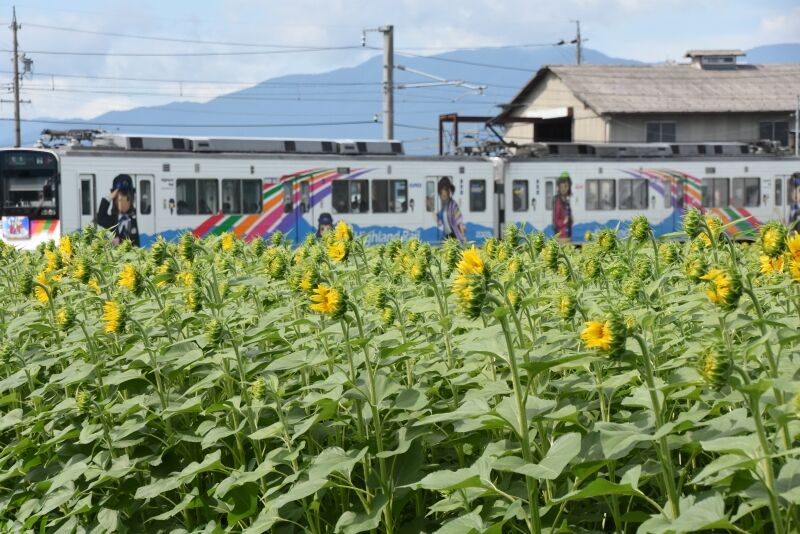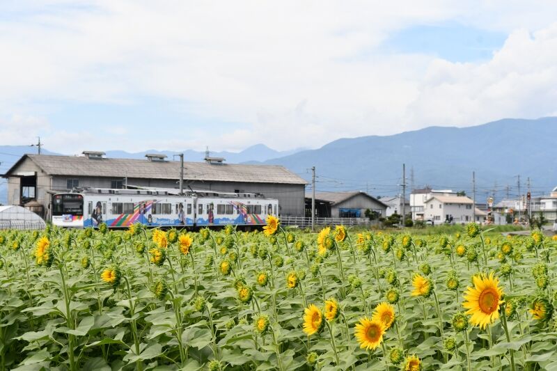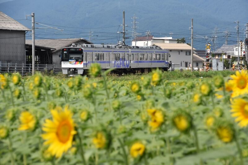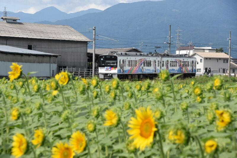 写真3枚目は、ワイドにして夏空をバックにコンテナ貨物の編成を。
