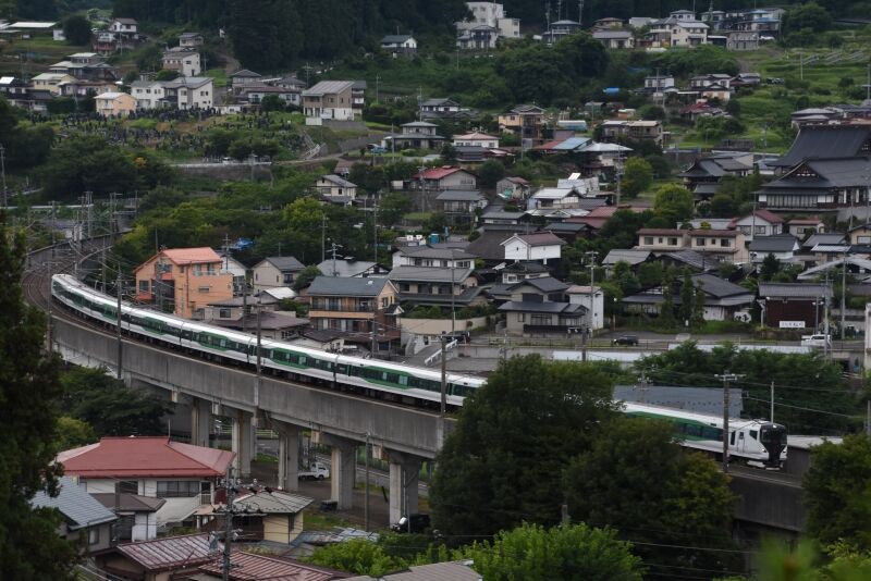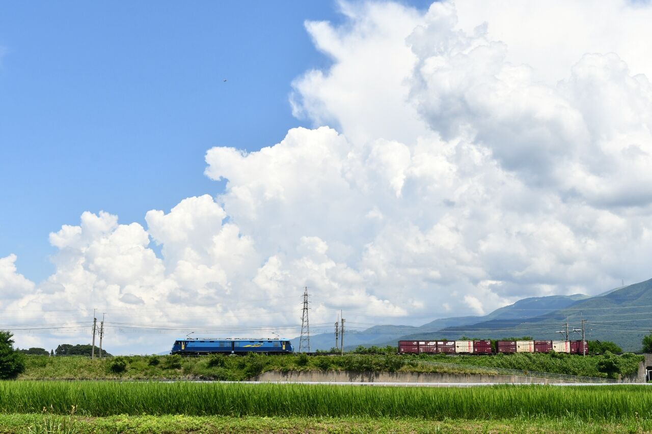 写真1枚目は、この日の東線貨物2083レは、EH200-20号機が牽くコンテナ貨物ですが、おや?単回か?と・・夏空をバックに撮影です。