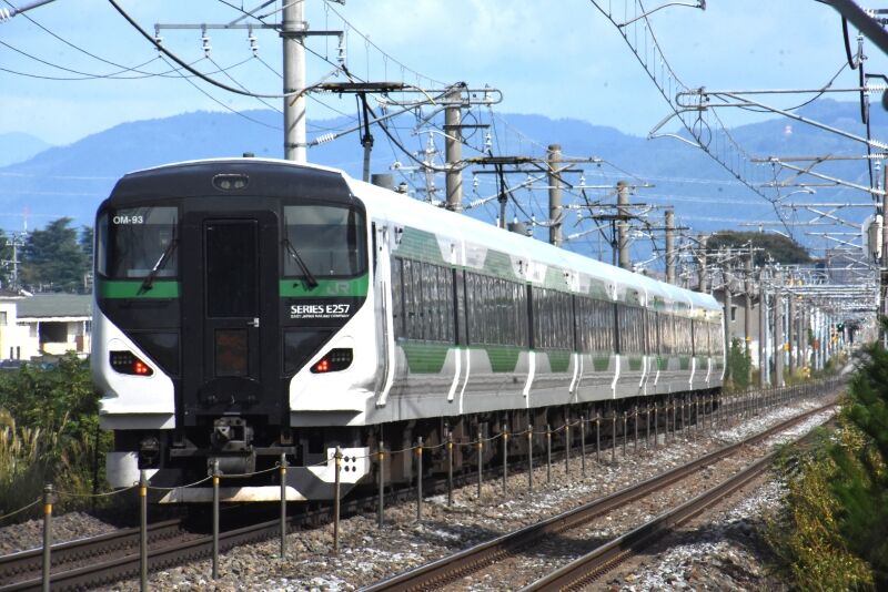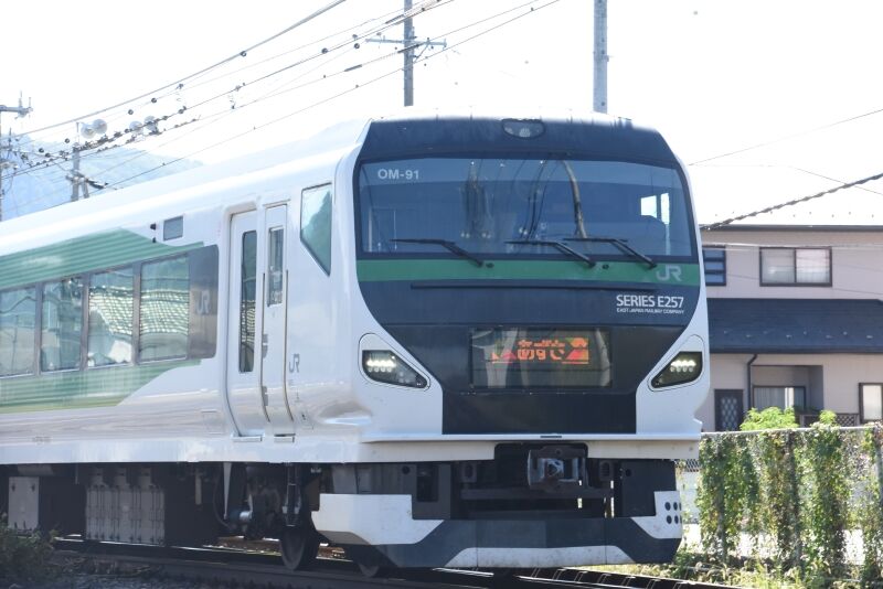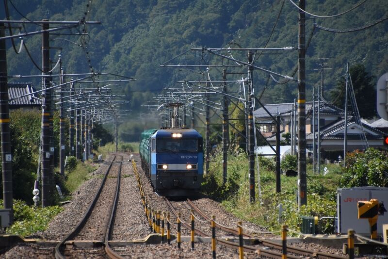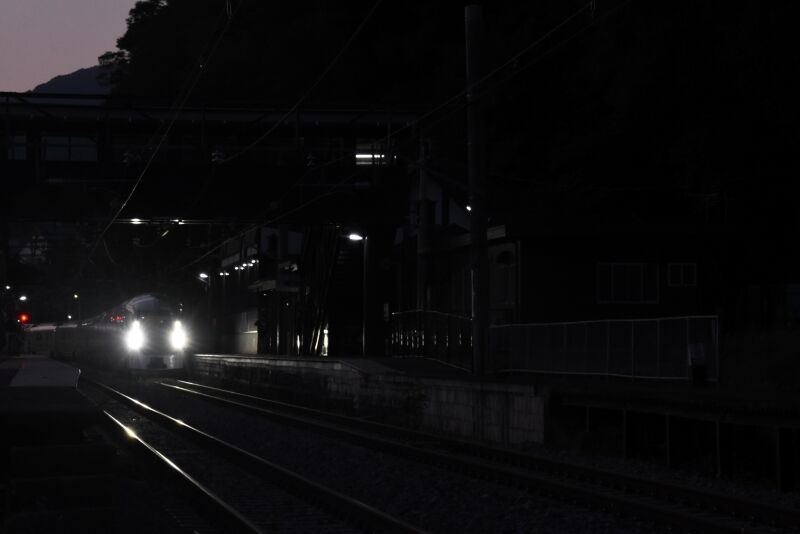 写真1枚目は、篠ノ井駅へミュージックホーンを鳴らしながら入線して来るE001系「TRAIN SUITE 四季島」の運転席を後撃ちすると、運転士さんが手を振っているのが見えます。