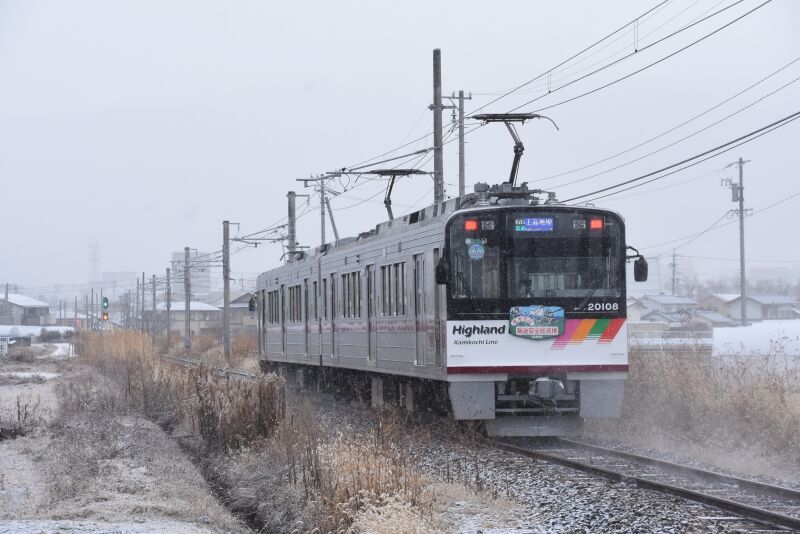 それでは本日の写真は、1月2日撮影 アルピコ交通20100形に「年末年始 輸送安全総点検」のHM掲出