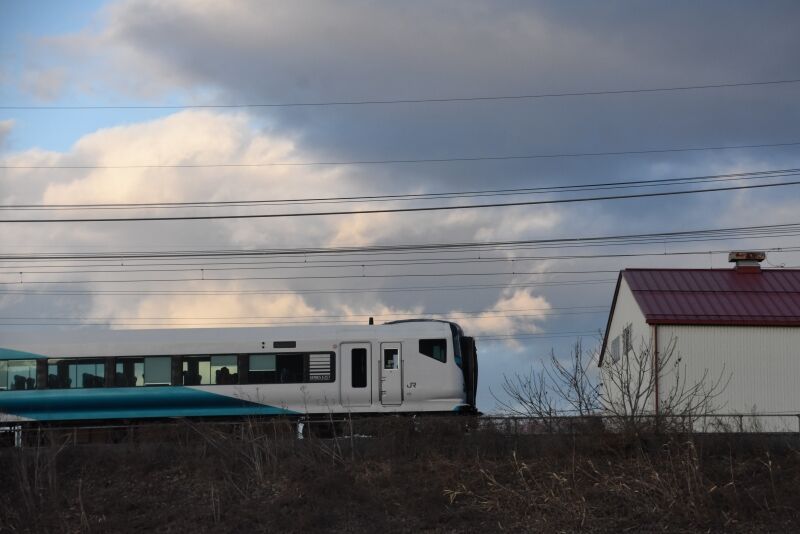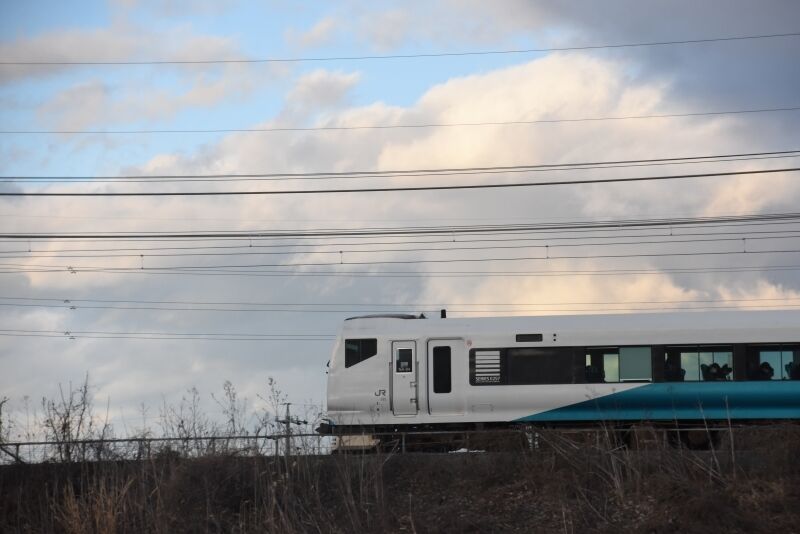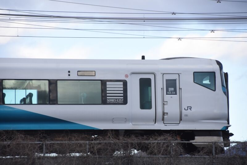 写真4枚目は、サイドに来たところで、先頭のクハE257-2104を撮影です
