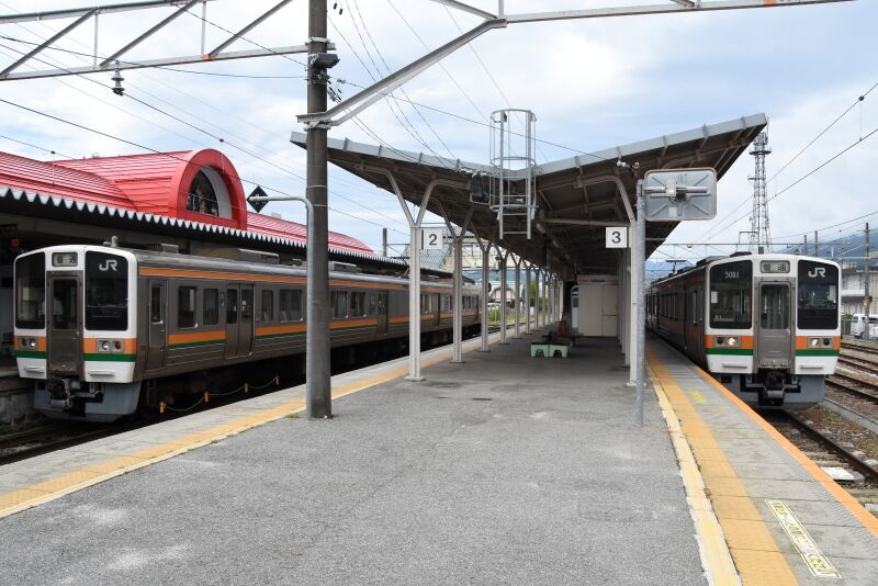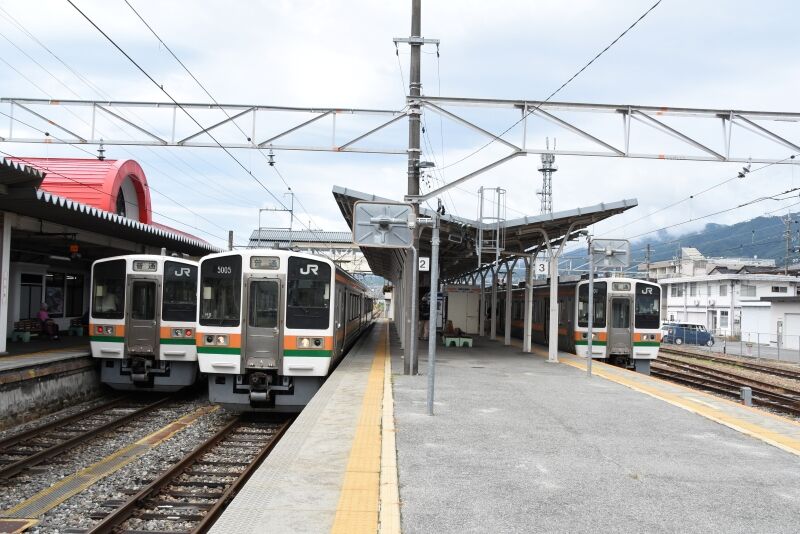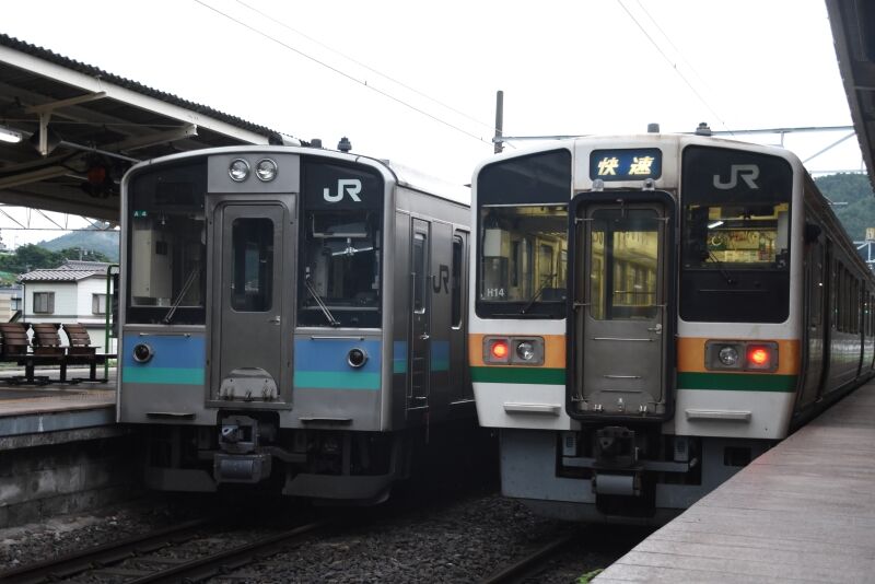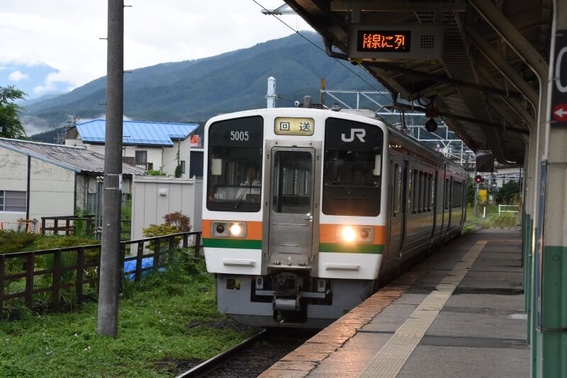 写真3枚目は、羽場駅で206Mと交換して来た2209M 211系による快速「みすず」です。