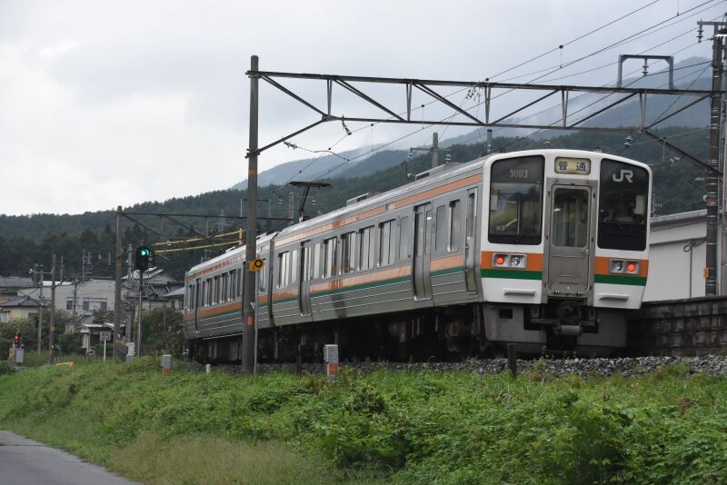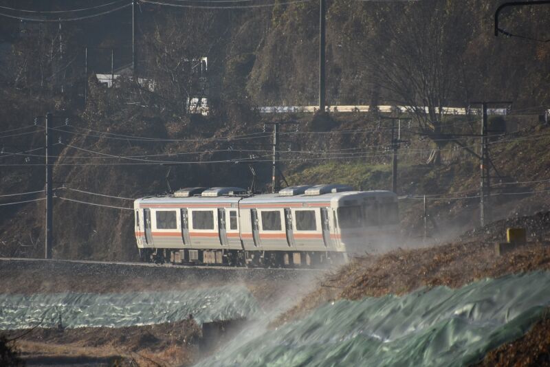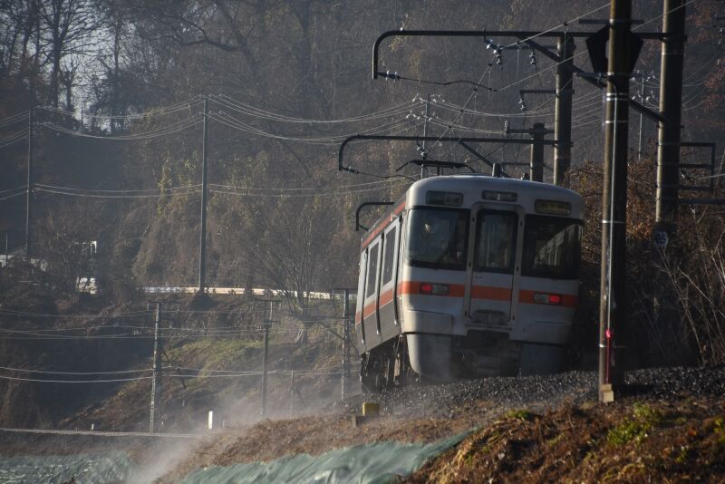 写真4枚目は、1408M 313系 R104編成を後撃ちして、法面からの湯気が立ち上がる中を通過して行きます。