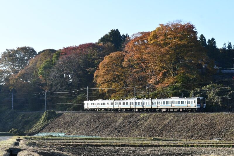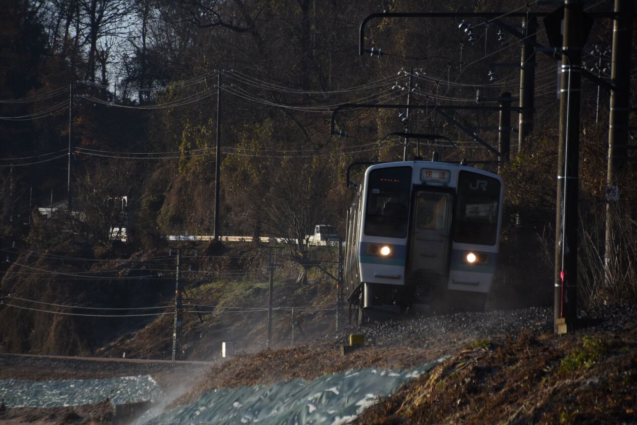 写真2枚目は、2209M 211系による快速「みすず」ですが、法面の霜が溶けて湯気が立ち上がっている中を行くシーンです。