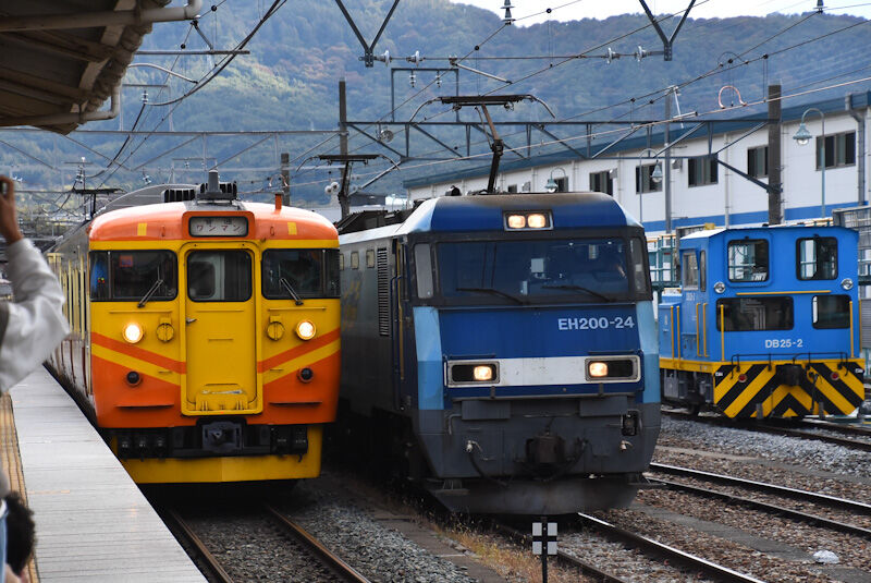 この後は、ここから戸倉駅まで追いかけます。戸倉駅に着くと、既に115系は到着していましたが、側線に入れるシーンには何とか間に合いました。ε-(´∀`*)ホッ