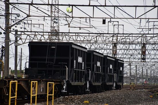 写真4枚目は、そして、こちらもも昨日と同じく、コキには液化アンモニアのタンクコンテナ UT10Cが載っています。こちらも、日産化学所有の私有コンテナです。