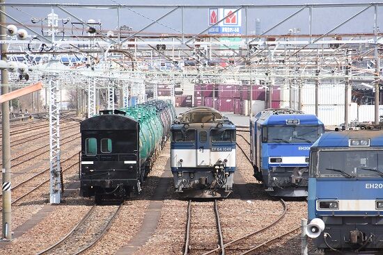 写真5枚目は、手前には赤ホキを牽いて来たと思われるEH200-9号機が、この日の5461レの釜です。この後、2080レの運用に入り、組成が済み発車待ちの所を絡めての撮影です。