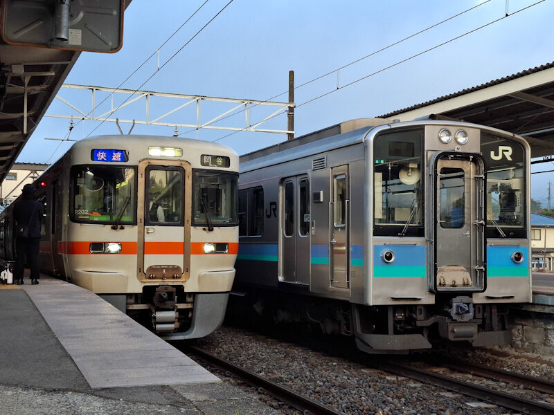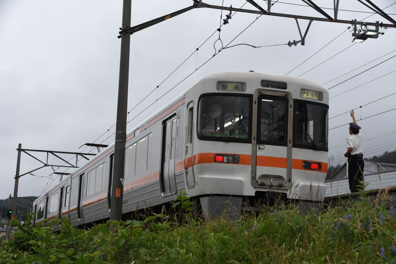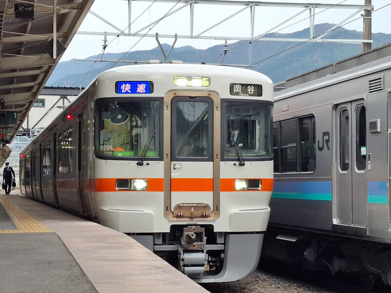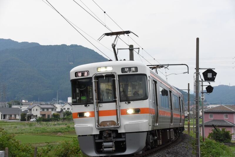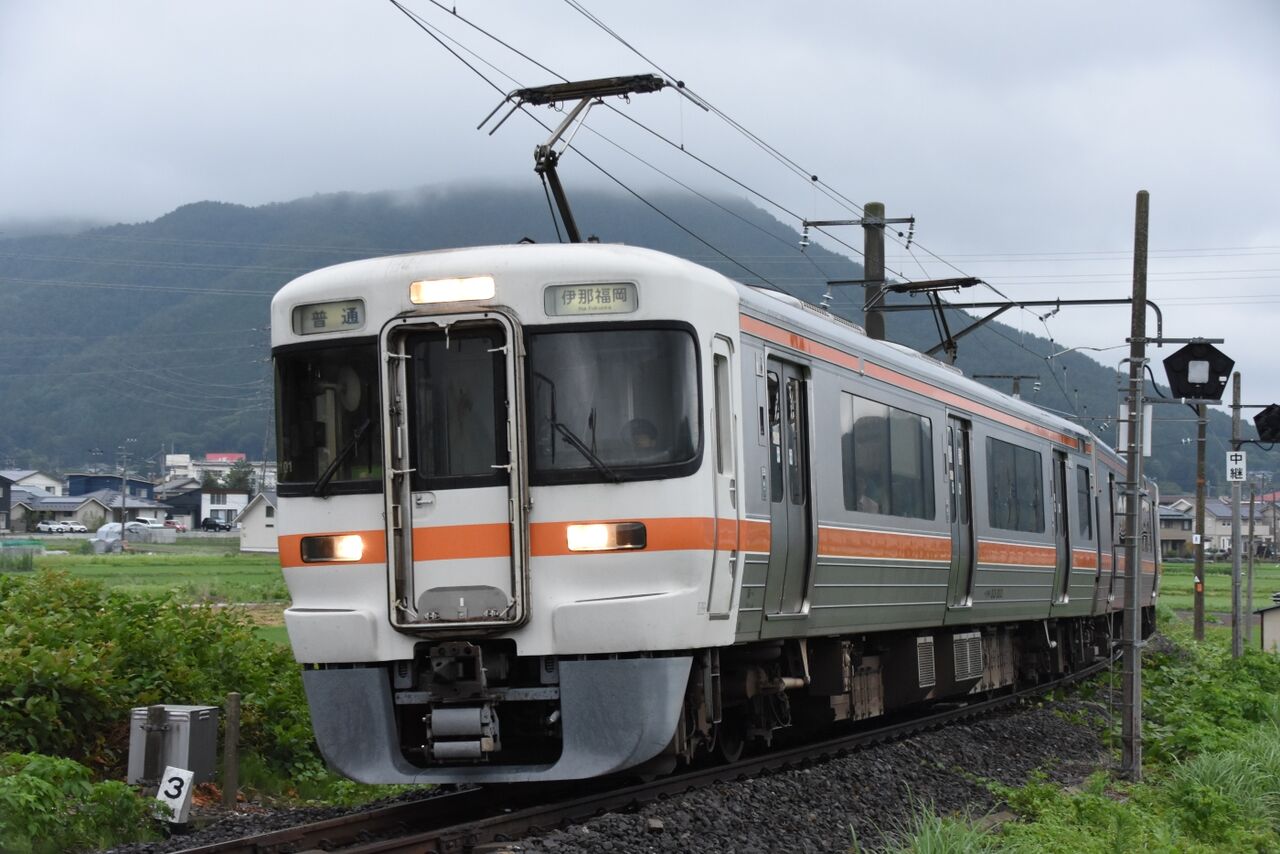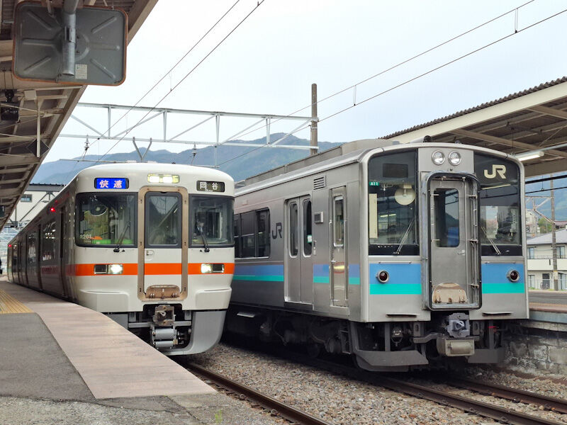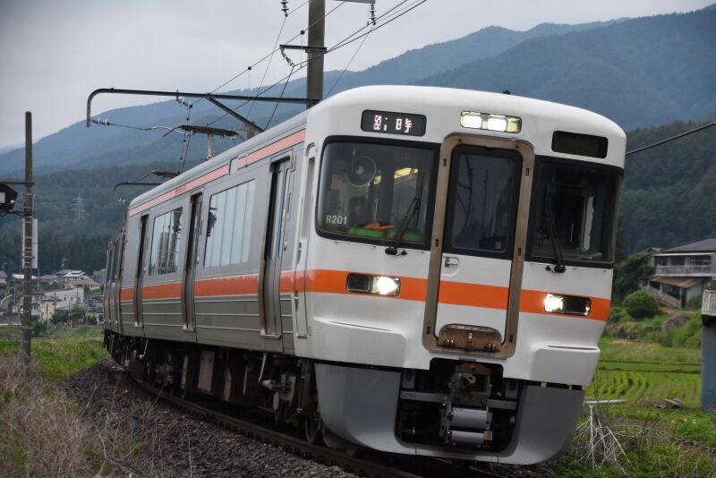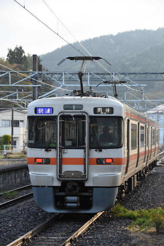 写真1枚目は、204M 朝一番の下り始発が、岡谷駅から戻ってきたところを、後撃ちです。アレ?213系ではなく、313系が代走だったようです。
