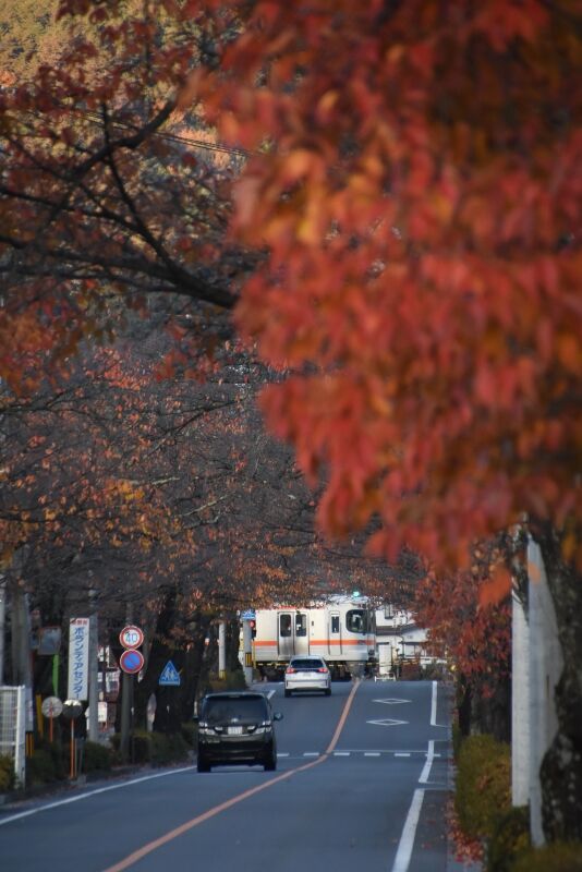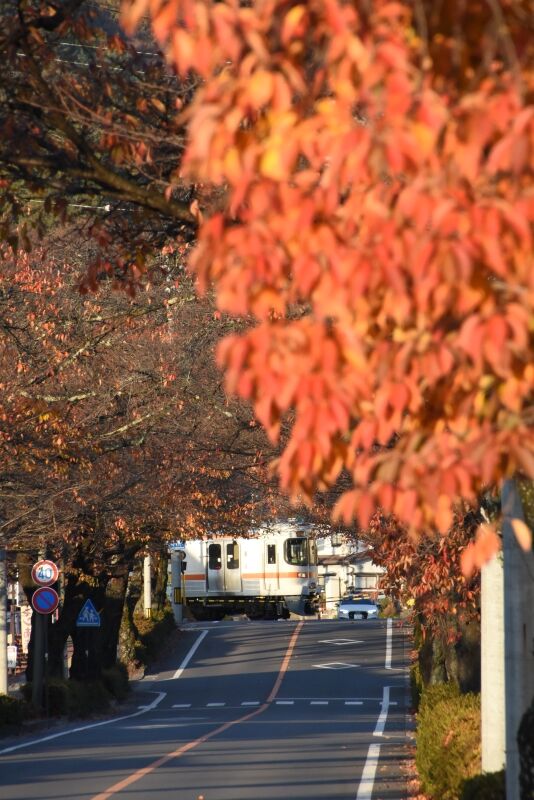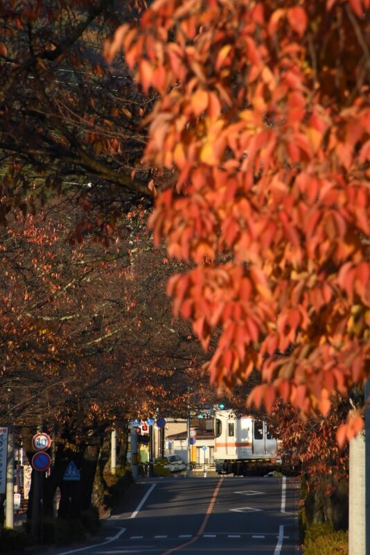 それでは本日の写真は、11月16日撮影 飯田線は宮木駅の紅葉した桜並木と・・