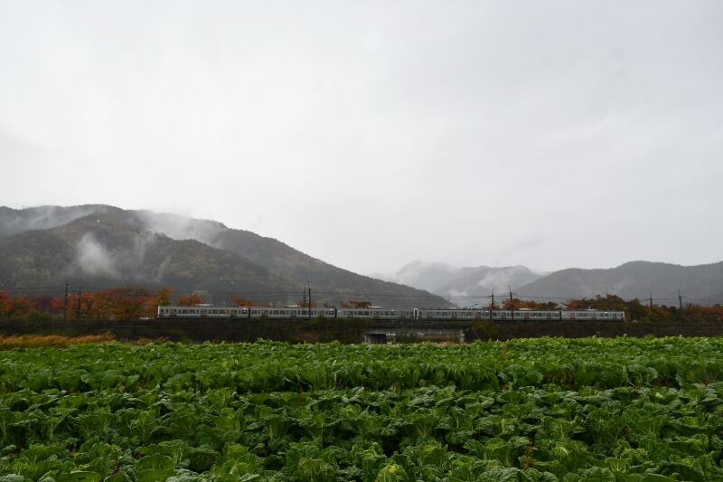 場所を移動して、西線貨物8084レを塩尻駅にて撮影した後は、塩尻駅に停車している間に先回りして、洗馬→日出塩間にて2発目を撮影でした。