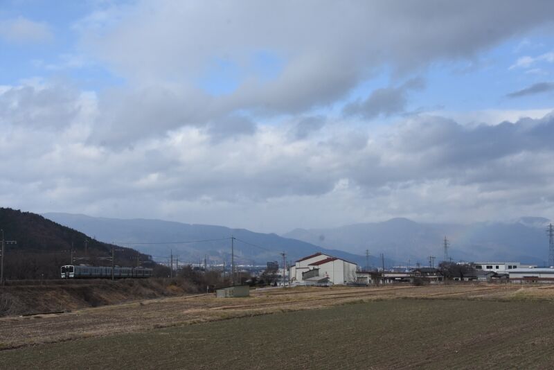 写真4枚目は、一旦は消えたのですが、再び虹が見えたので431M 211系を後撃ちしての撮影です。