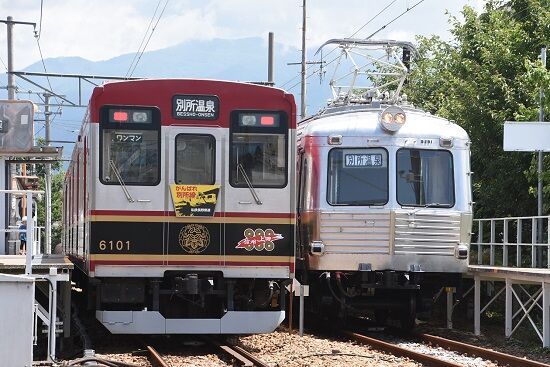 写真1枚目は、乗って来た6000系 6001編成 「真田ドリーム号」と5200系の並びです。