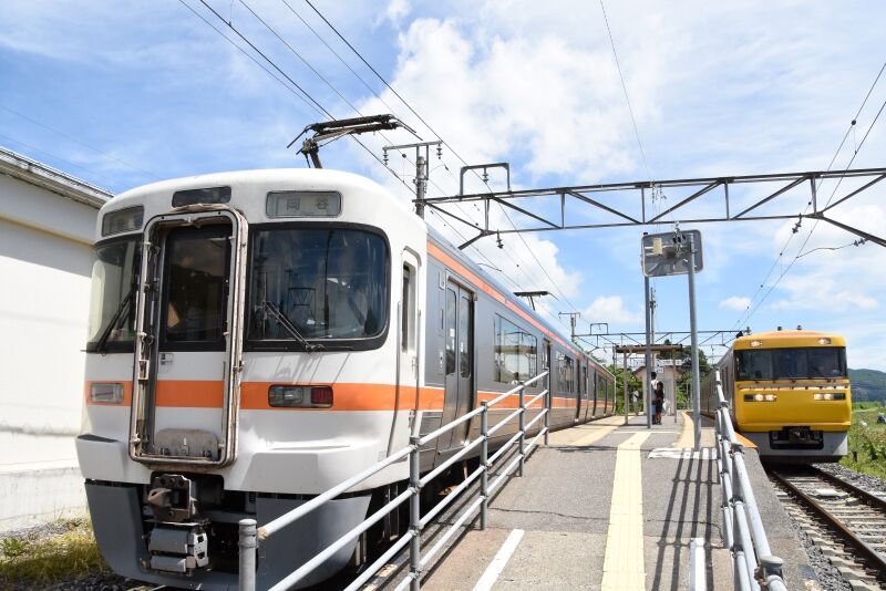写真2枚目は、217M 313系 R106編成が伊那新町駅に入線しての並びです。