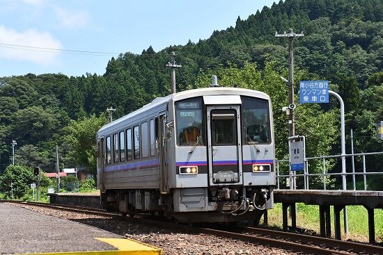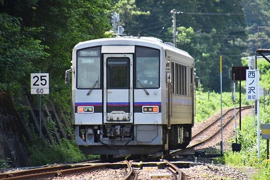 写真3枚目は、425D キハ120-22 美祢色が南小谷からやって来たシーンです。