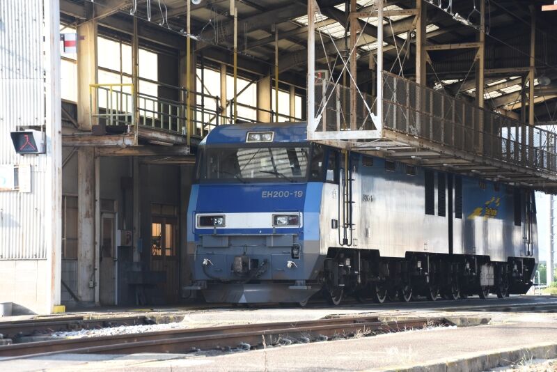 写真4枚目は、場所を移動して、塩尻機関区篠ノ井派出にて庫内にはEH200-19号機の姿が・・この日の朝、2085レで到着した釜でした。