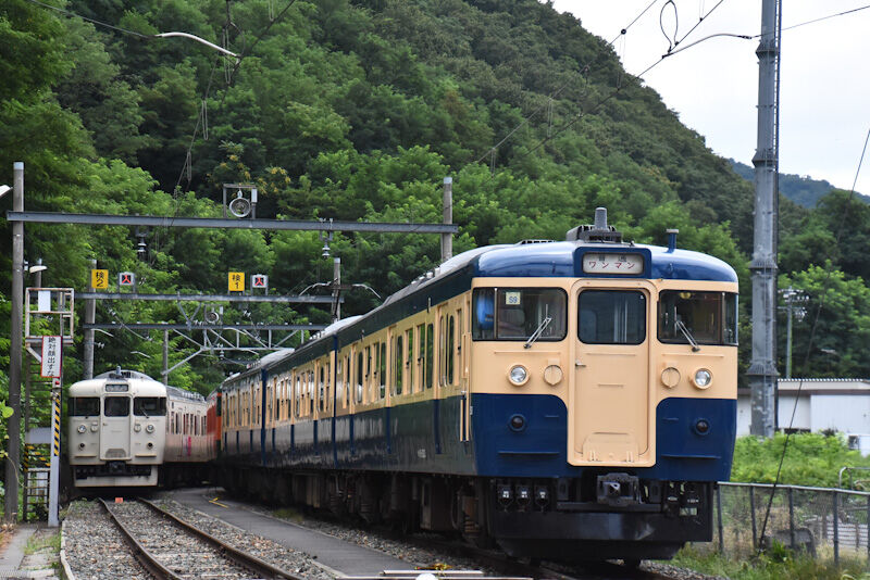 写真1枚目は、篠ノ井駅にてE001系「TRAIN SUITE 四季島」と、617M 115系 S9編成 スカ色との並びです。