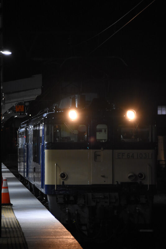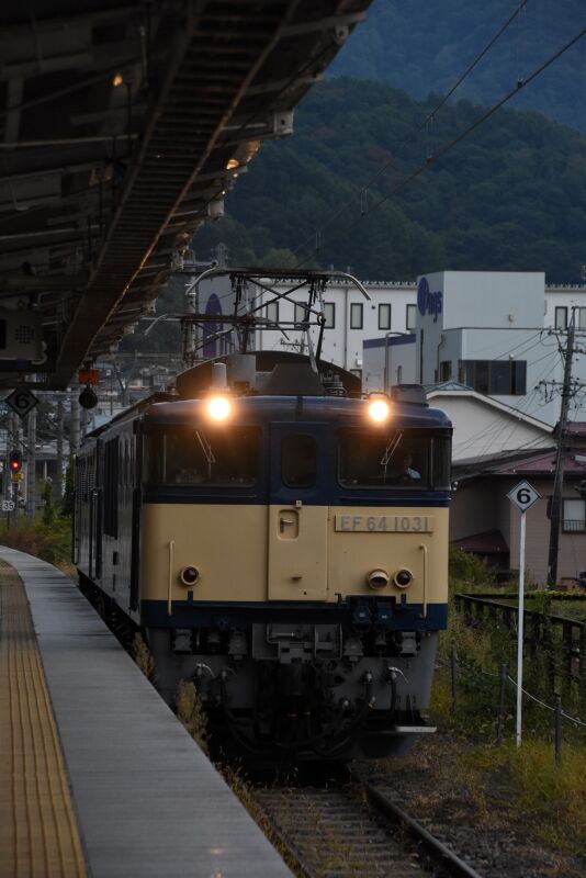 写真4枚目は、時間になると、岡谷駅をホイッスル1発鳴らして発車して行くEF64-1031号機を軽く流しての撮影です。