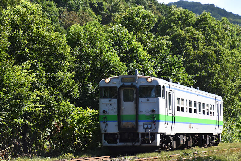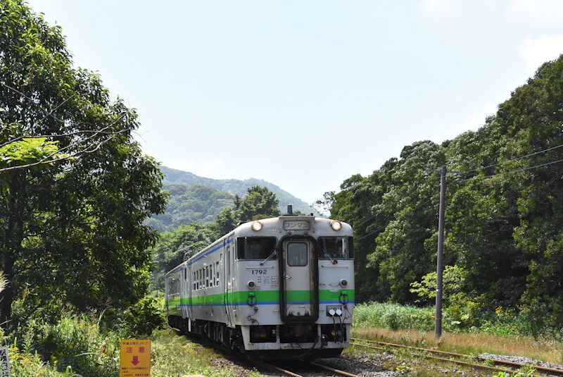 写真3枚目は、127D 函館行きのキハ40-1799 「ながまれ号」が釜谷駅に入線です。