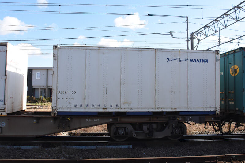 写真5枚目は、U28A-33 浪花運送のFashion Service のコンテナです。コンテナの中は、ハンガーコンテナ仕様になっているそうです。