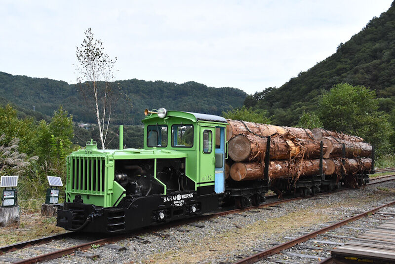 写真1枚目は、運材列車の後は、132号機が牽く客車列車です。
