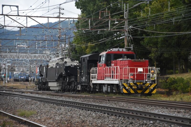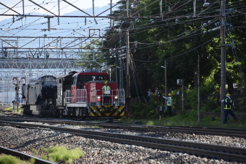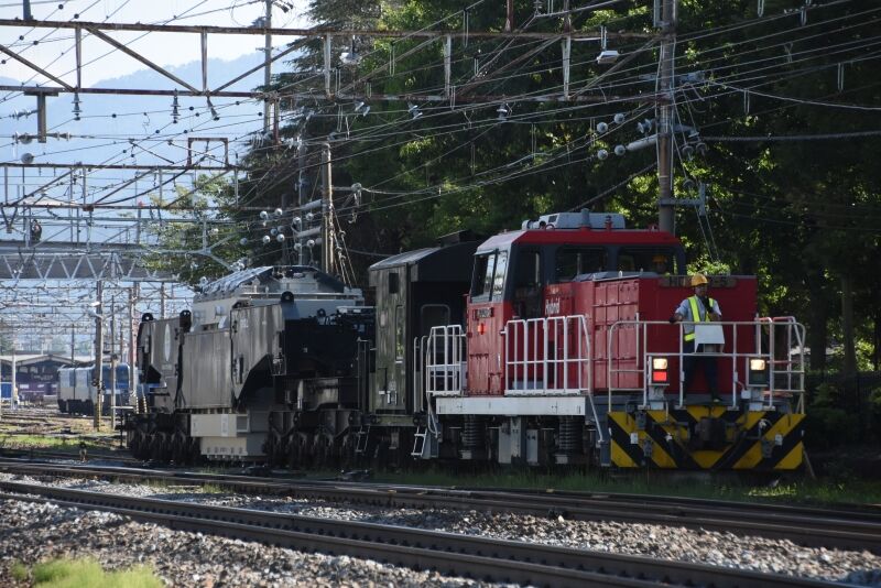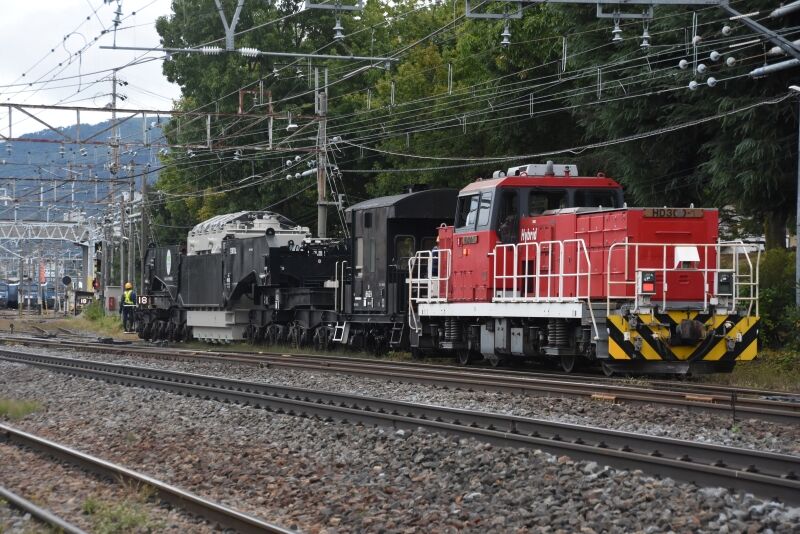 写真4枚目は、今度は、トランスを下ろすコンテナ貨物駅に向けて後押しをするHD300-1号機です。