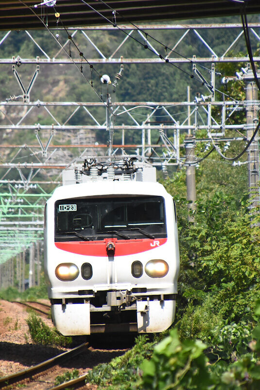写真1枚目は、辰野駅にてバカ停車をしていた試9420M E491系 East i-Eがミュージックホーンを鳴らして、ハイビームで発車です。