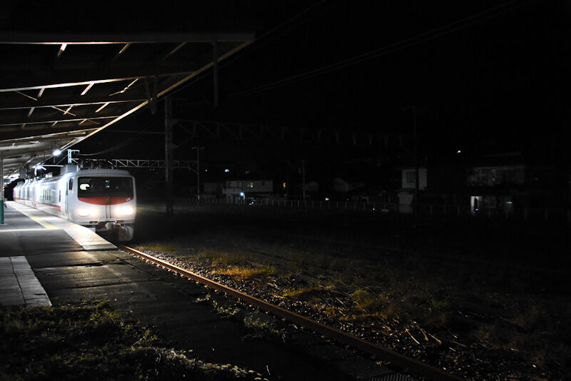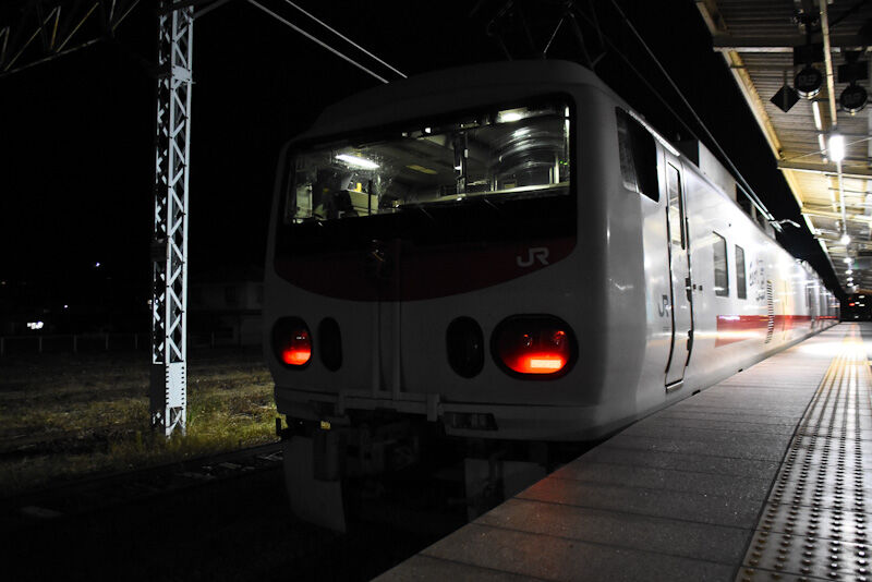 写真2枚目は、辰野駅を発車して行くEast i-Eを後撃ちです。本当は真っ暗ですが、踏切の灯で後ろ姿が見えました。