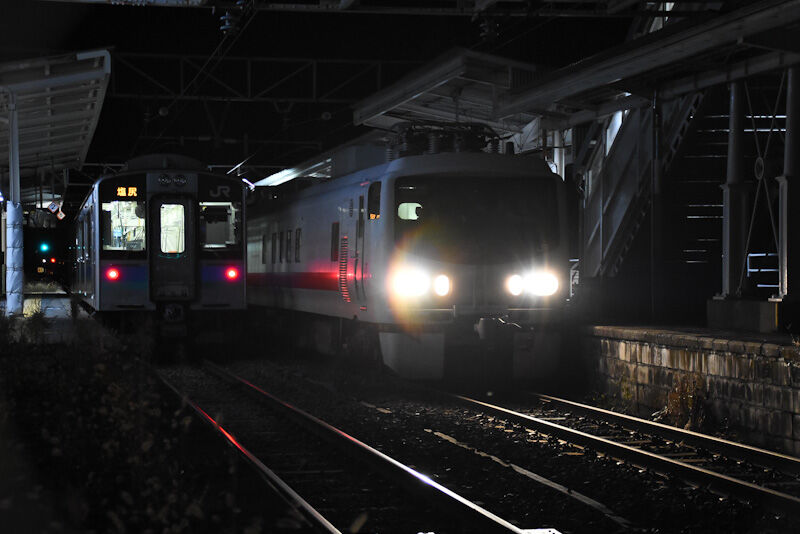 写真4枚目は、塩尻駅からの上りの最終166M E127系との交換です。
