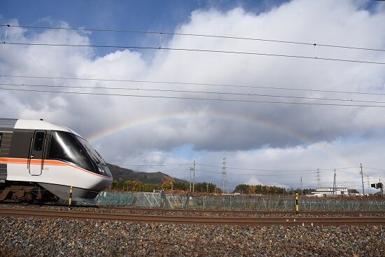 写真2枚目は、中央西線にて、1001M 383系「WVしなの1号」と,虹です。(^^)v