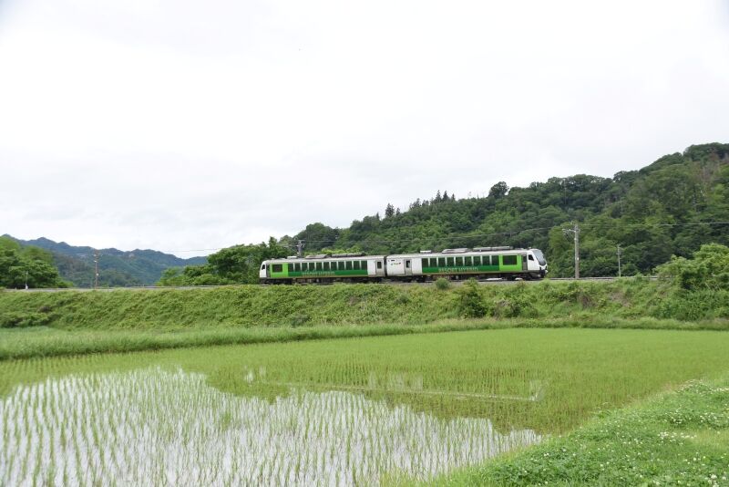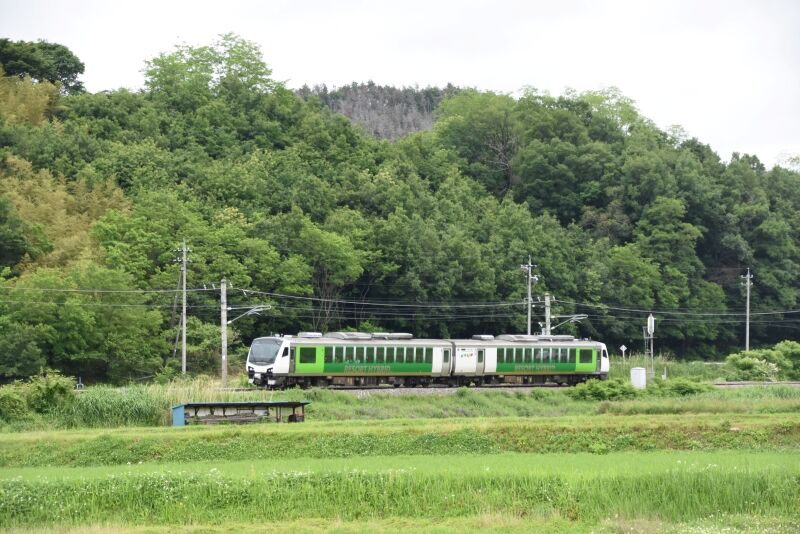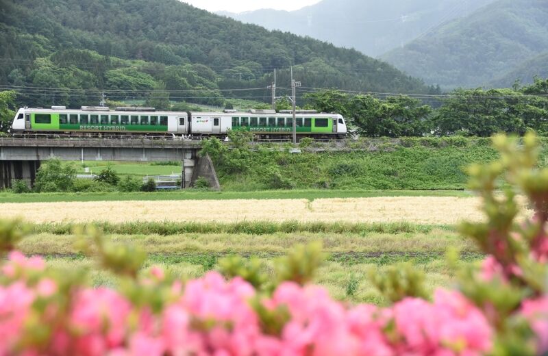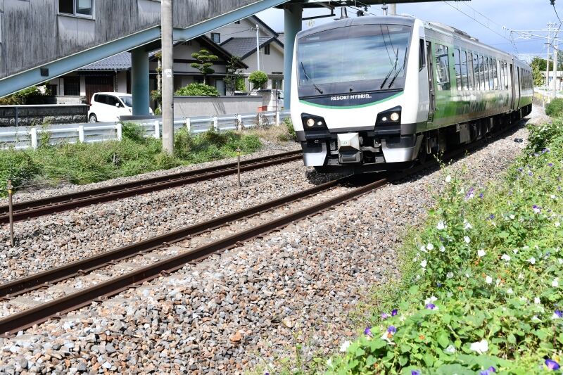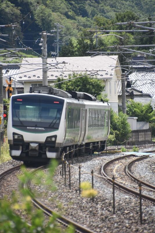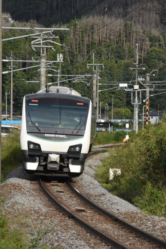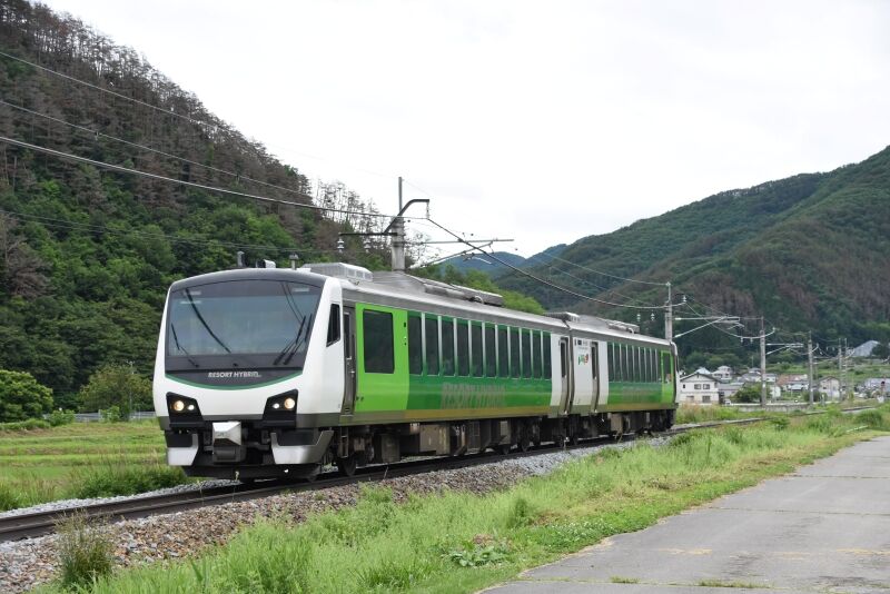 写真4枚目は、返しの9581D HBーE300系による「リゾートビュー諏訪湖」を上りとは別の場所にてサイド狙いです。