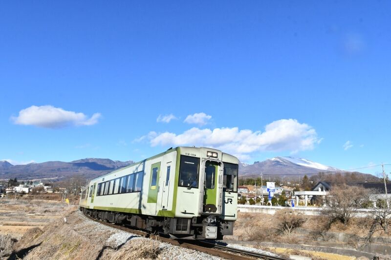 写真3枚目は、少し場所を移動して、三岡-乙女間にてキハ110の232Dを浅間山をバックに撮影です。