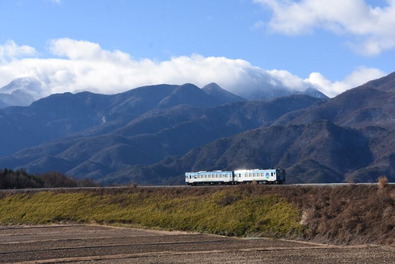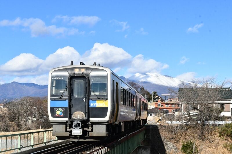 写真2枚目は、滑津駅近くにて「HIGH RAIL1375」中込駅の返却回送の前を走る、226D キハE200を浅間山をバックに撮影です。