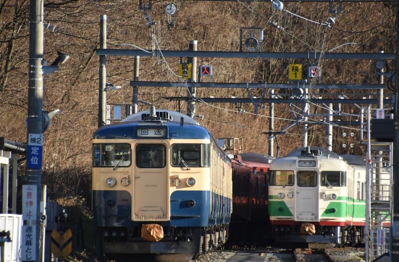 写真5枚目は、オマケにて、しなの鉄道戸倉駅の側線にて、お休み中の115系 S9編成 スカ色とS7編成の初代長野色です。